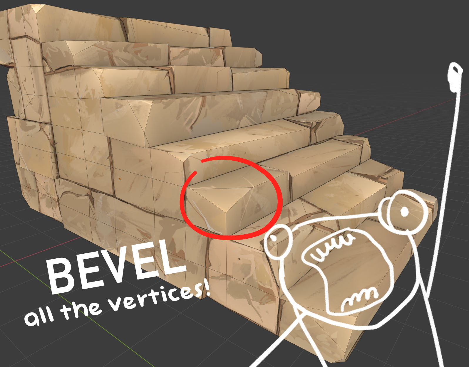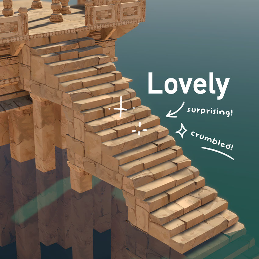 Stairs are the perfect example of something repeating over and over, right? But old stone stairs are different, full of oddities; each step feels unique. How can we simplify something as organic as this, so we can assemble an entire scene without being required to model and texture every single part?