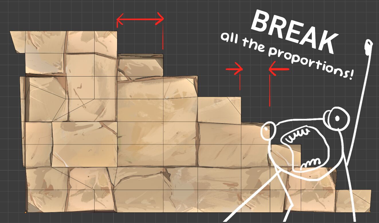 I know, real stairs avoid this at all cost, but we're not recreating the real world. Insert oddities here. But like before when designing the texture, don't create something too distinctive. Move things to prevent visual repetition.