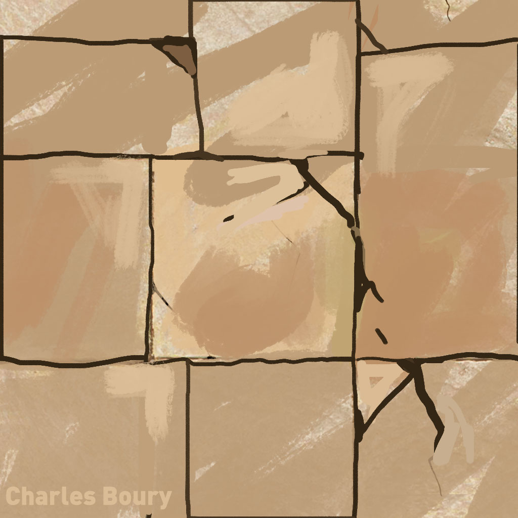 The texture role is center. So design the texture first, work on the modeling after. To begin, plan the structure of your texture: decide what type of surface and pattern you need, and at what size. Draft it quickly and condense everything to a tileable rectangle.