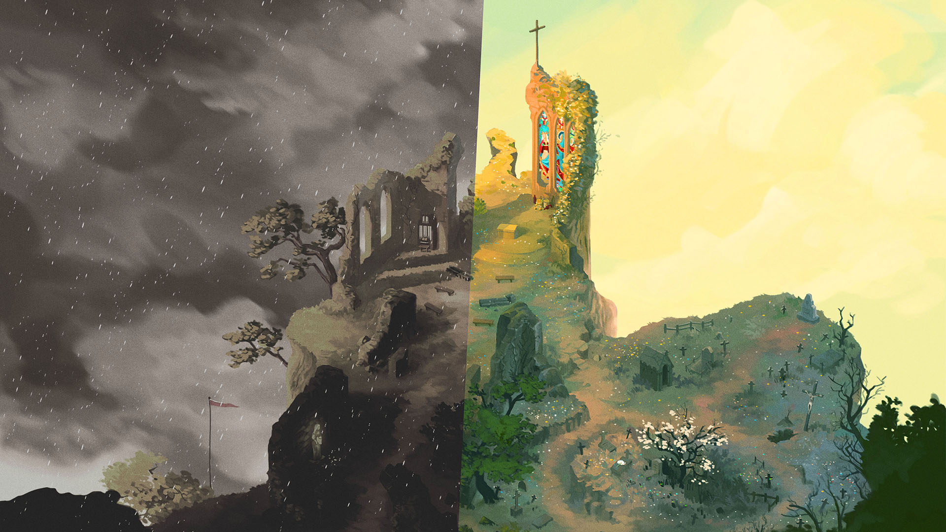 The first chapter of the game is very pleasant, as the creature discovers the world. The player traverses very refined paintings, lots of white, and the paintings goes up in color slowly. Did you defined it through storyboards?