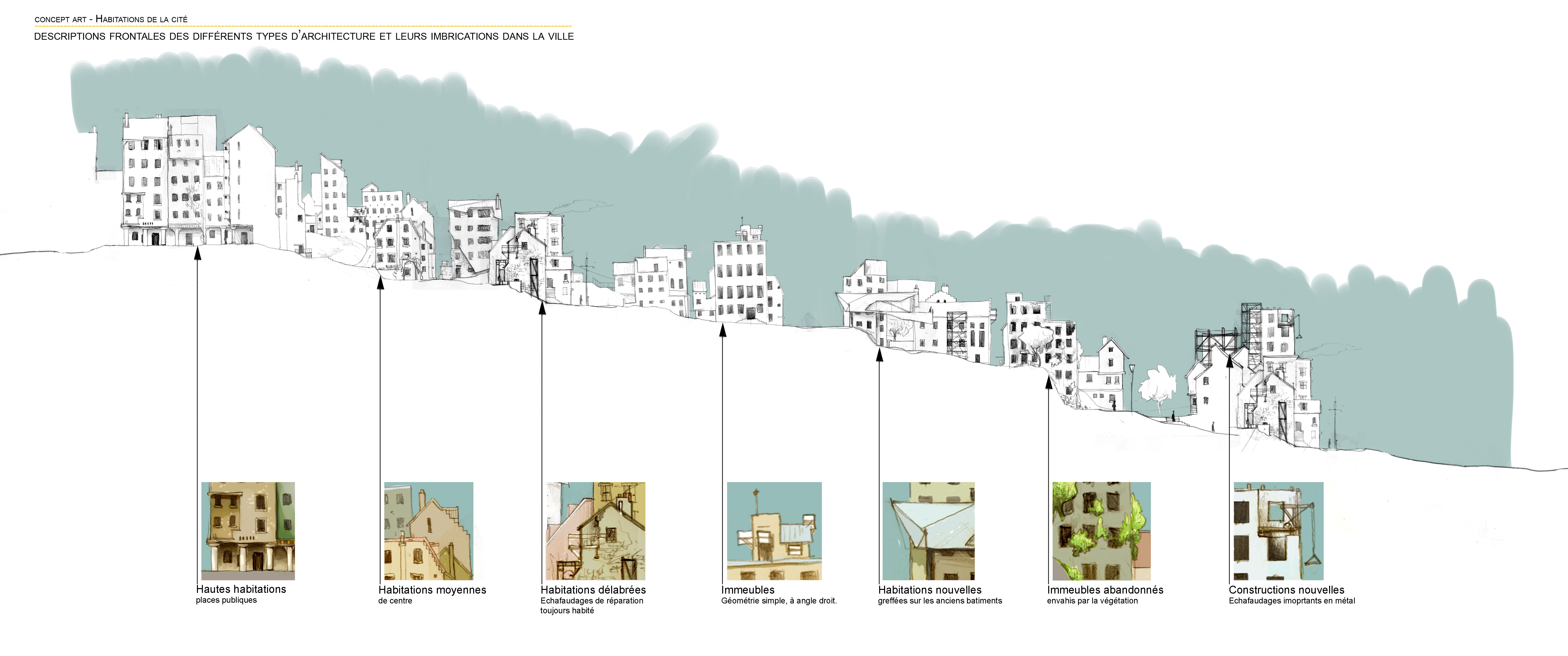 As you can see, I still loved doing sketches, plain air sketches of Paris. I went to this school because of the last high school assignment. It was a space design creative project. I went so far as making a complete model. It's usual to make models but at that time, I was painting Warhammers. Tiny figures of knights. Moreover, I was also making the game table sets, with tiny cute trees and everything. So for the last project of high school, instead of a regular model I made a whole warhammer-like table set. My project was made of modules, and you could play with it. The teachers loved it. I even got a perfect grade! So I said to myself: "architecture, here I come".
